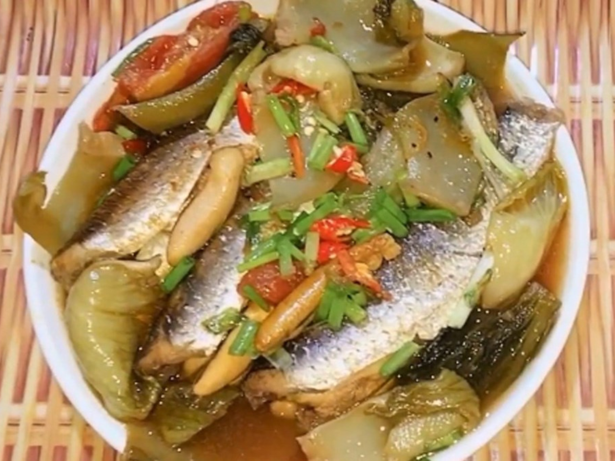 Cá đối kho dưa cải là món đặc sản thơm ngon, đậm đà hương vị hồ Tam Chúc. (Nguồn: Sưu tầm)