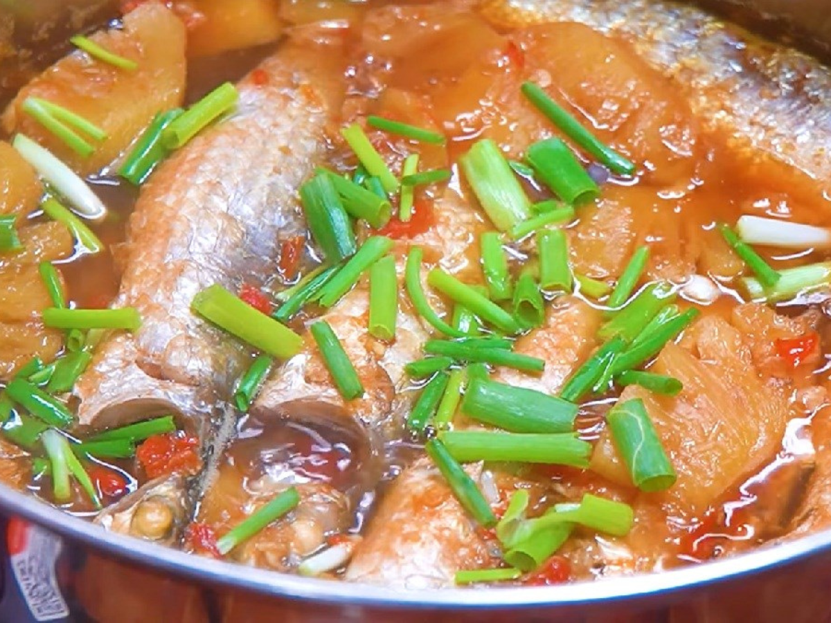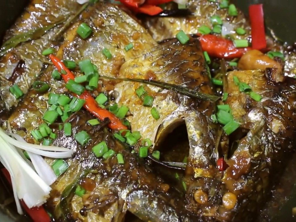 Cá đối kho thơm là món đặc sản hấp dẫn với hương vị ngọt thanh của hồ Tam Chúc. (Nguồn: Sưu tầm)