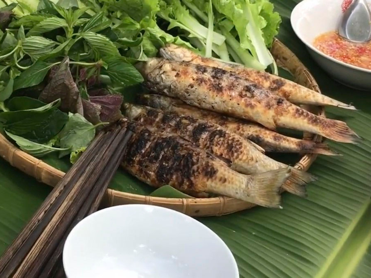 Cá đối nướng mọi là món đặc sản thơm lừng, giữ trọn hương vị tự nhiên hồ Tam Chúc. (Nguồn: Sưu tầm)