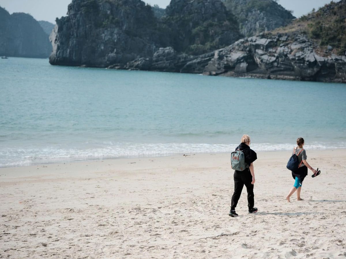Không phù hợp để tắm biển, nhưng thời tiết Cát Bà dịp Tết lại rất lý tưởng cho những buổi dạo biển nhẹ nhàng và chụp ảnh phong cảnh. Các bãi Cát Cò khoác lên mình vẻ yên bình hiếm thấy, mặt biển lặng hơn, sắc nước trầm và sâu, tương phản với bầu trời mùa đông nhạt màu. Khoảng thời gian từ cuối buổi sáng đến đầu giờ chiều, khi sương tan và nắng dịu, là lúc ánh sáng đẹp nhất để ghi lại những khung hình tinh tế. Ánh nắng xiên nhẹ giúp cảnh biển trở nên mềm mại, phù hợp với du khách yêu thích phong cách chụp ảnh tự nhiên, giàu chiều sâu.