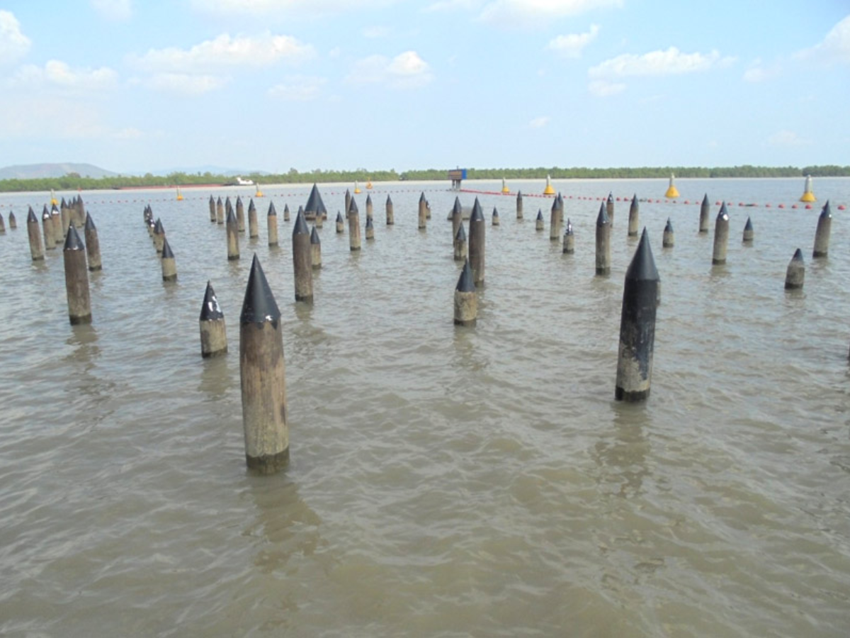 Các cọc nhọn di tích còn lại tại Bạch Đằng Giang. (Nguồn: Sưu tầm)