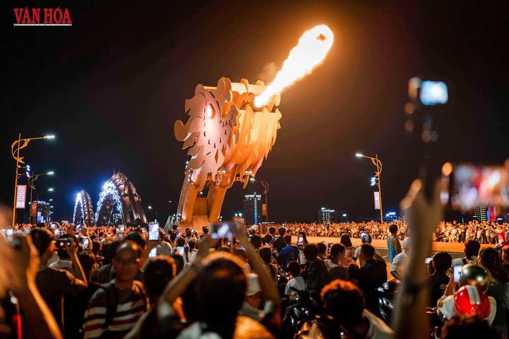 Người dân và du khách xem cầu Rồng phun lửa, phun nước
