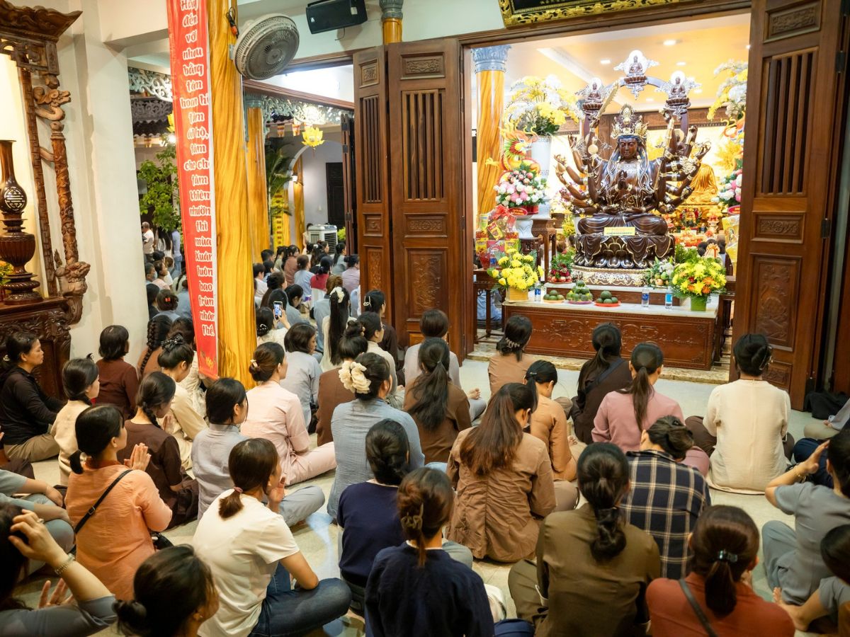 Vào những thời điểm lễ lớn, không khí tại chùa Bát Nhã trở nên trang nghiêm và ấm cúng với hàng nghìn người từ khắp nơi hội tụ. Nhiều buổi lễ từng thu hút gần 5.000 Phật tử và đạo hữu cùng tham dự, thể hiện sự tin tưởng sâu sắc của cộng đồng vào giá trị tinh thần do ngôi chùa mang lại. Khi bước vào lễ chính, bạn sẽ nghe tiếng tụng kinh vang vọng, tiếng niệm Phật đều đặn. Âm thanh này tạo nên một không gian yên bình và giúp tâm trí người tham dự được thư thái, hướng thiện hơn.