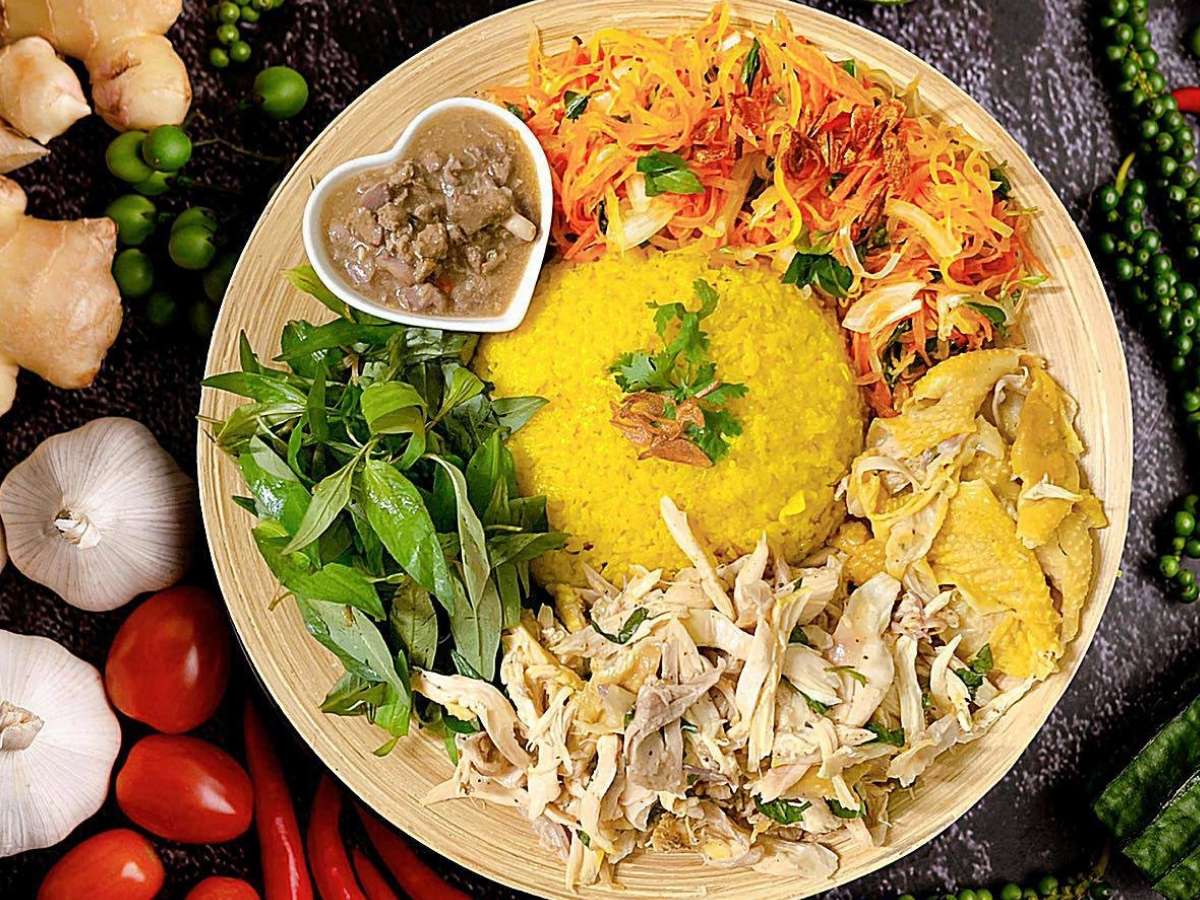Nguyên liệu làm nên cơm gà đều được tuyển chọn cẩn thận, gồm gà thả vườn thịt săn chắc, gạo thơm và sắc vàng tự nhiên từ nghệ cùng nước luộc gà. Sự hòa quyện giữa gia vị truyền thống cùng nước chấm pha chế khéo léo tạo nên nét riêng biệt, lôi cuốn thực khách ngay lần đầu thưởng thức.