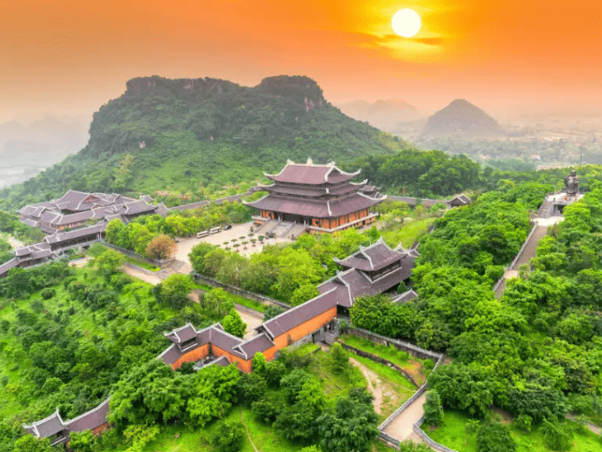 Điều nhiều người thích nhất ở Bái Đính có lẽ là cảnh hoàng hôn nhìn từ khu vực gần bảo tháp. Khi mặt trời dần khuất sau núi, cả quần thể chìm trong gam màu vàng dịu nhẹ, tạo nên bức tranh vừa hùng vĩ vừa nhẹ nhàng. Một nơi hoàn hảo để thư giãn sau những ngày bộn bề.