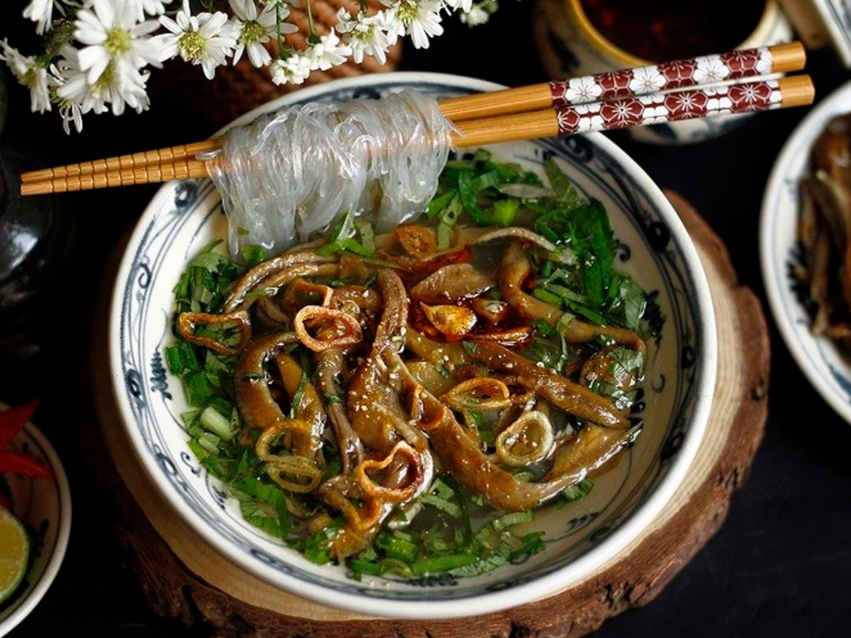 Miến lươn Ninh Bình được chế biến tinh tế với thịt lươn vàng giòn và nước dùng thanh đậm vị. (Nguồn: Sưu tầm)