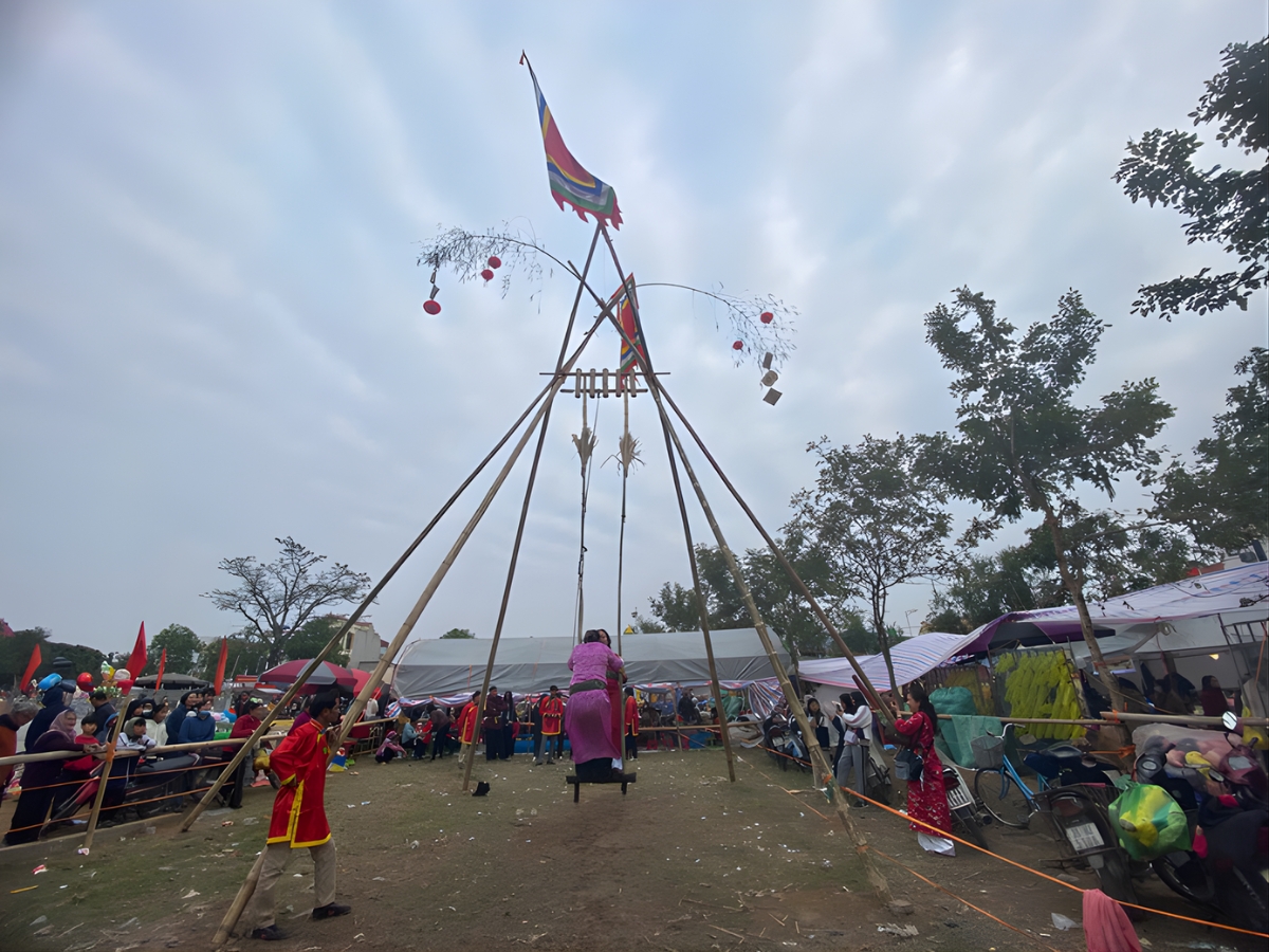 Trò chơi đánh đu cổ truyền thu hút đông đảo người dân tham gia. (Nguồn: Sưu tầm)
