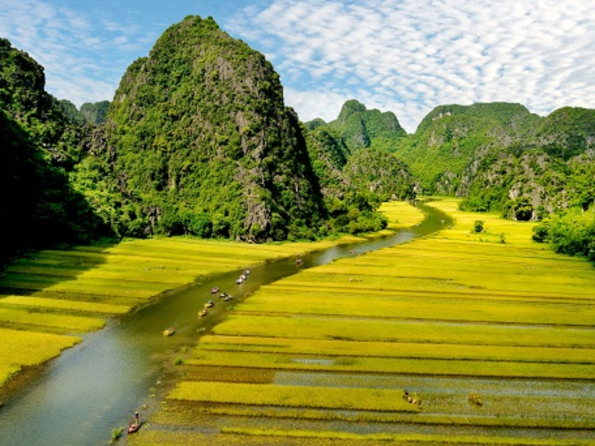 Tam Cốc đẹp nhất vào mùa lúa chín khi dòng Ngô Đồng như khoác dải lụa vàng rực. (Nguồn: Sưu tầm)
