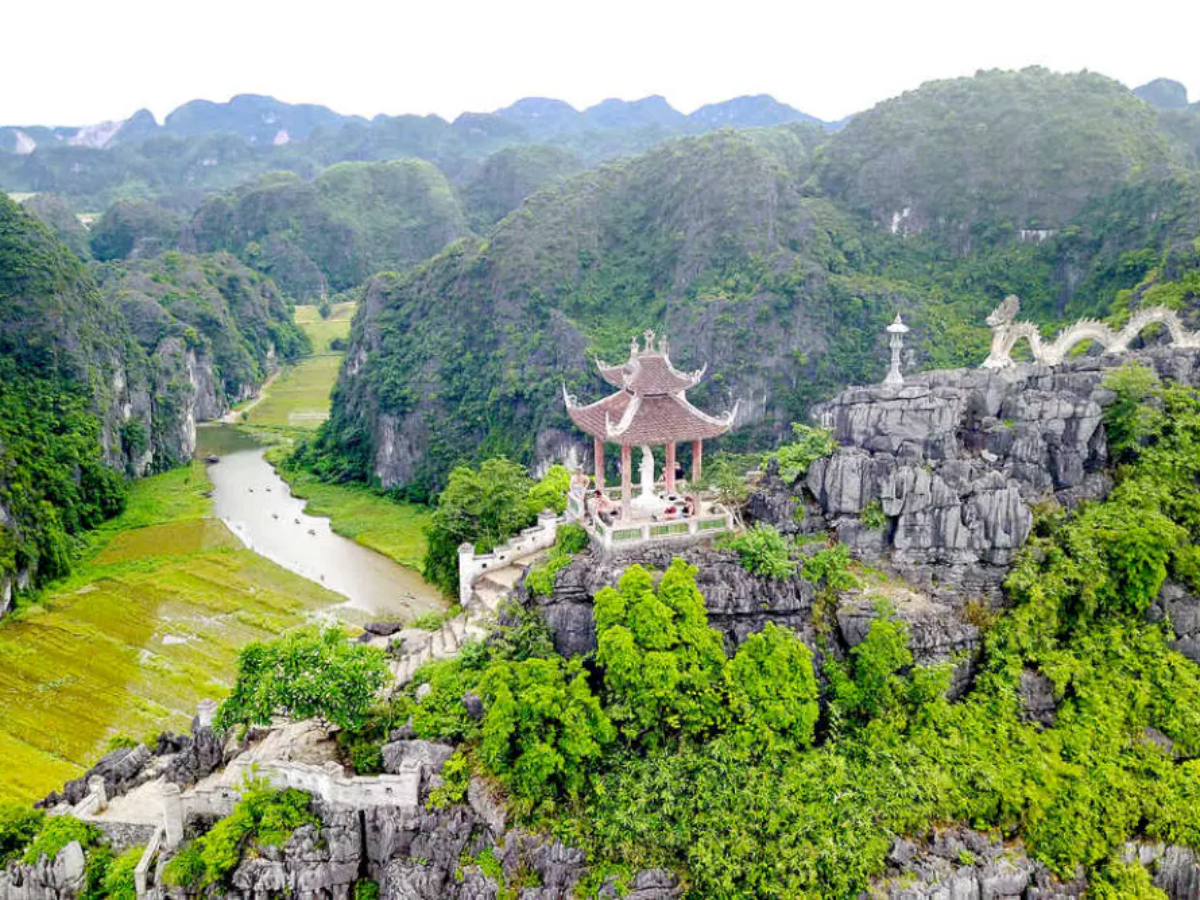 Điểm check-in nổi tiếng bậc nhất Ninh Bình, đặc biệt với giới trẻ bởi view núi Ngọa Long nhìn xuống Tam Cốc. Dù phải leo gần 500 bậc đá, khung cảnh thu về hoàn toàn xứng đáng.