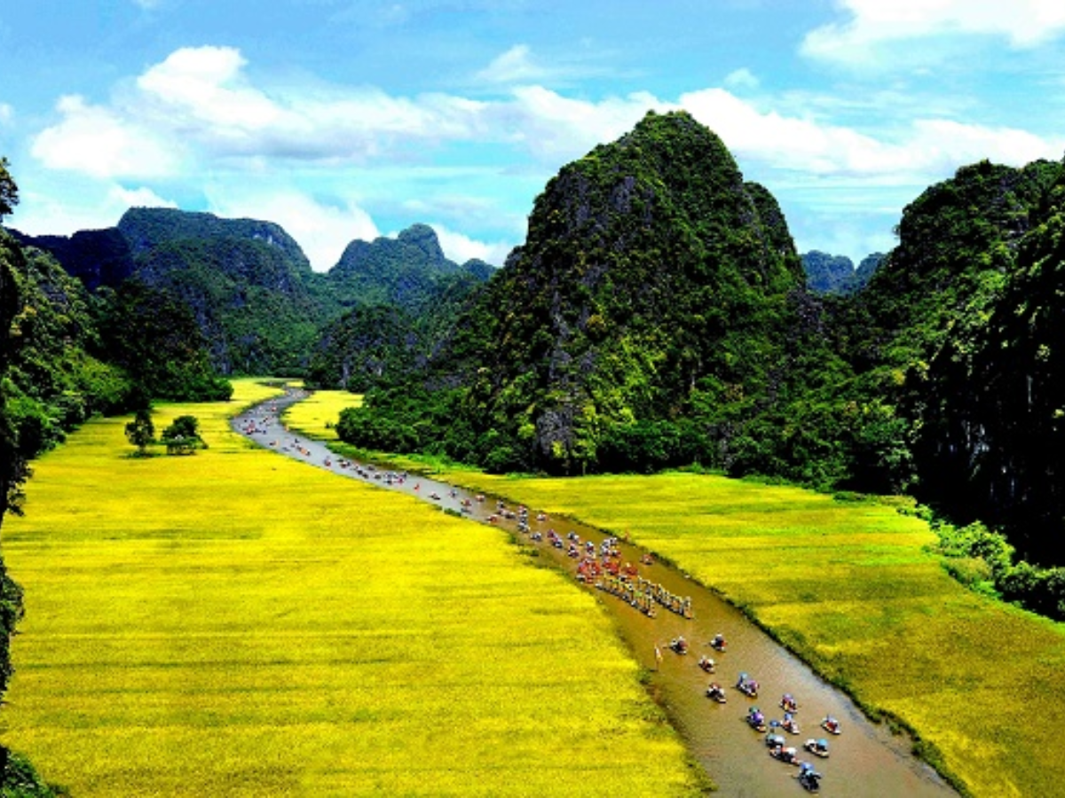 Ninh Bình gây ấn tượng với cảnh đẹp mang đậm dấu ấn sông núi. Tam Cốc và Tràng An đem đến những chuyến chèo thuyền nhẹ nhàng qua các thung lũng mênh mông, hai bên là núi đá vôi dựng đứng và cánh đồng lúa xanh hoặc vàng tùy mùa. Hang Múa là nơi lý tưởng để ngắm toàn cảnh thiên nhiên từ độ cao, trong khi cố đô Hoa Lư và chùa Bái Đính đưa du khách chạm tới chiều sâu văn hóa – lịch sử của vùng đất cổ.