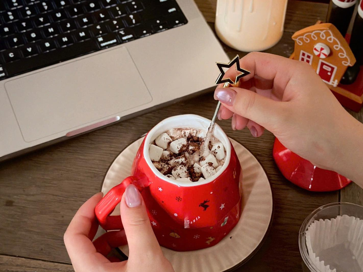 Bên cạnh không gian đẹp, Cham Cham còn nổi tiếng với các món bánh thơm ngon, càng hợp hơn khi kết hợp cùng mùa Giáng sinh. Trong dịp này, quán thường bổ sung thêm những chiếc bánh cupcake, mousse và cookies được trang trí theo chủ đề Noel, khiến bàn trà trở nên rực rỡ và đầy tinh thần lễ hội. Đồ uống mùa đông tại Cham Cham cũng được chăm chút, đặc biệt là các món trà nóng thơm mùi hoa quả, cacao nóng và latte tạo hình xinh xắn.