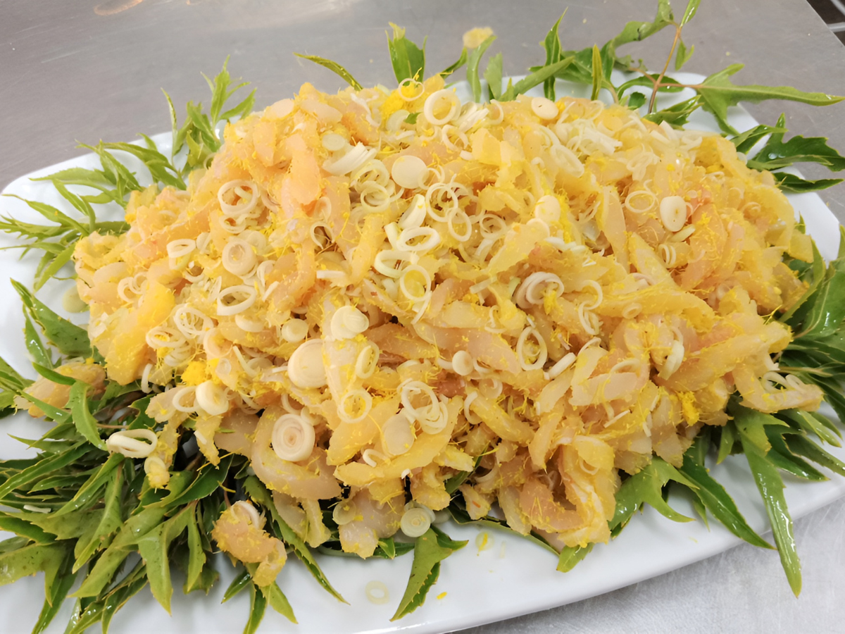 Gỏi cá nhệch hấp dẫn nhờ vị ngọt và thớ thịt dai giòn. (Nguồn: Sưu tầm)
