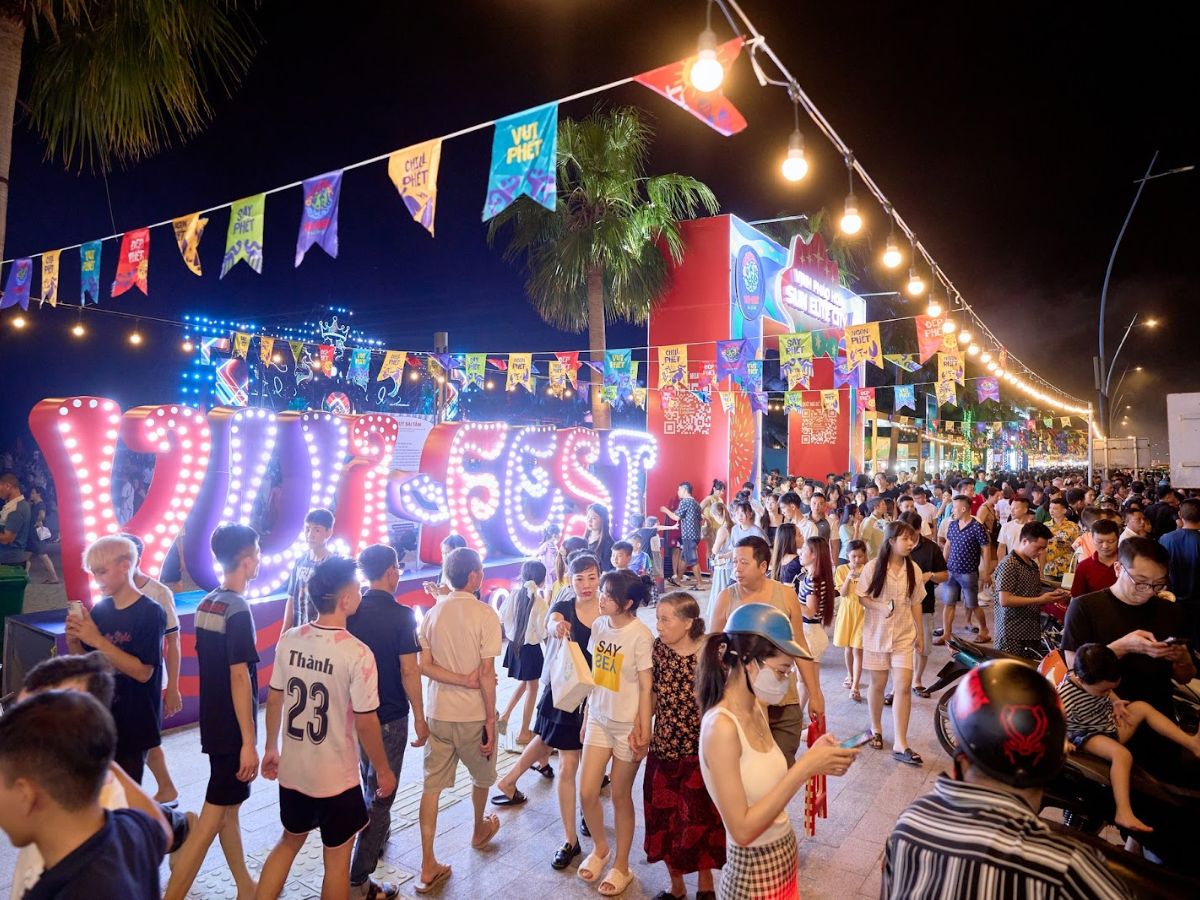 Điểm nhấn lớn nhất chính là chuỗi hoạt động quy mô như trình diễn ánh sáng 3D Mapping, pháo hoa tầm cao mỗi ngày và các show nghệ thuật tương tác. Nhờ đó, VUI-Fest không chỉ đơn thuần là một khu chợ đêm, mà thực sự trở thành một “điểm đến về đêm” đúng nghĩa – nơi bạn không chỉ đi chơi, mà còn sống trong bầu không khí lễ hội.