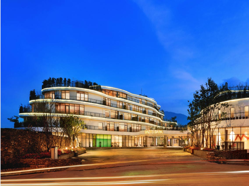 Hotel de la Coupole – MGallery là khách sạn 5 sao ở Sa Pa, mang phong cách kiến trúc Pháp cổ, có spa cao cấp và nhà hàng sang trọng. Pao's Sa Pa Leisure gây ấn tượng với thiết kế lấy cảm hứng từ văn hóa H'Mông, phòng rộng, ban công nhìn ra thung lũng. Sapa Diamond Hotel được đánh giá cao nhờ dịch vụ lễ tân hoạt động 24/7 cùng bữa sáng buffet phong phú. Silk Path Hotels và Resorts cung cấp trải nghiệm nghỉ dưỡng cao cấp với hồ bơi trong nhà và dịch vụ spa thư giãn.