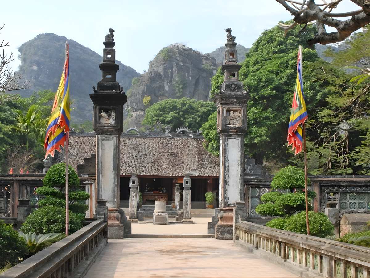 Within the historical site are the temples of King Dinh Tien Hoang and King Le Dai Hanh. These structures feature traditional architecture and are linked to the history of the ancient capital region. The surrounding limestone mountain landscape creates a distinctive scenery.