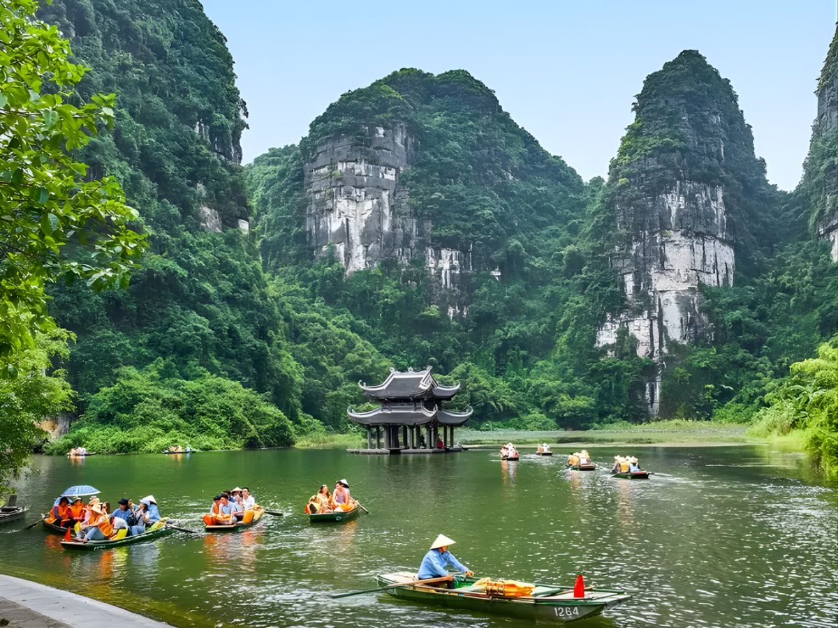 Ninh Binh is located about 100 km south of Hanoi, with a travel time of only about 1.5 to 2 hours by car or train, making it very convenient for short trips. Thanks to the developed transportation system with highways and national roads directly connecting, visitors can easily depart early in the morning and start their exploration journey within the same day. The not-too-far distance makes Ninh Binh an ideal choice for short holidays like March 10th, when many people want to find a destination that is both familiar and rich in experiences. This locational advantage allows visitors to easily arrange a 1 to 2-day itinerary while still visiting many famous landmarks. With just a short trip, visitors can escape the urban pace of life, immerse themselves in the peaceful natural space, and enjoy the fresh air of the ancient capital region. This is also why Ninh Binh is always on the list of destinations chosen by many tourists from Northern Vietnam during holidays or weekends.