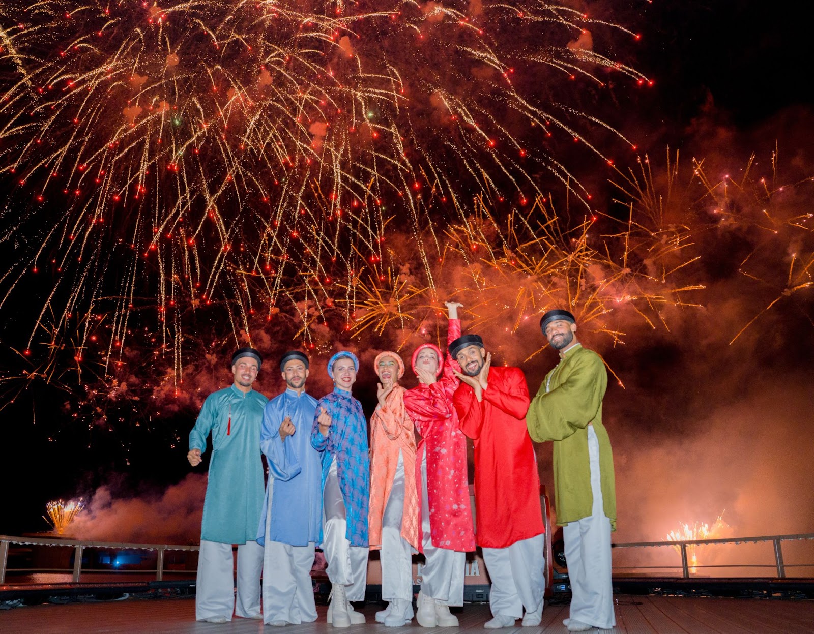 The evening culminates with Kiss of the Sea, where fire, water and laser effects surround the audience before high-altitude fireworks light up the sky. For a more romantic view, visitors can watch from the Campanile Clock Tower, overlooking a panorama of illuminated seaside architecture.