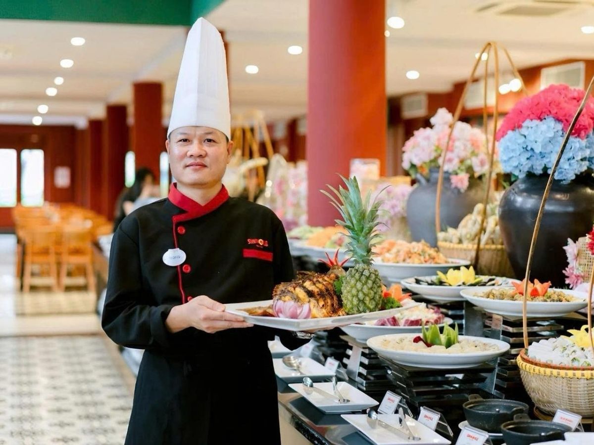 At noon, visitors enjoy an in-house buffet with a variety of diverse dishes.