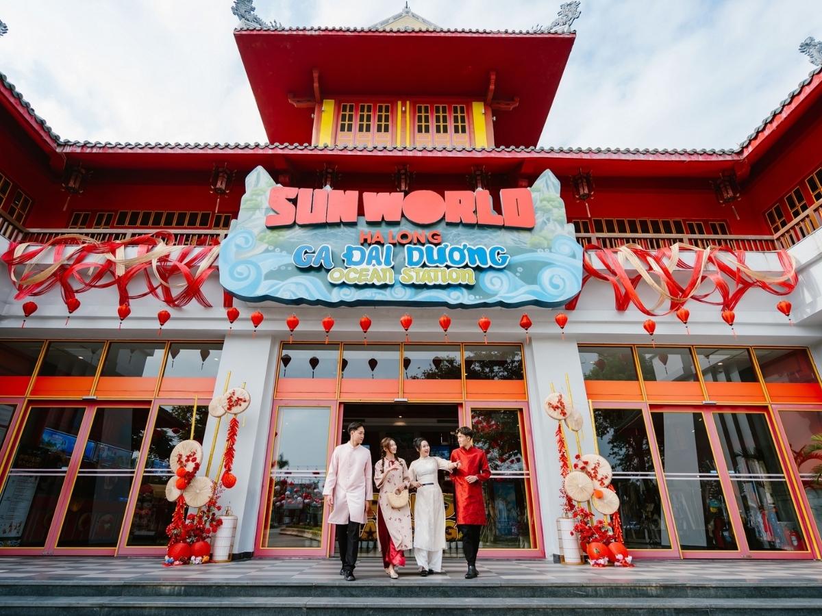 Sun World Ha Long is an international-class entertainment complex. Dragon Park gathers many challenging games such as roller coasters and panoramic Ferris wheels, suitable for thrill-seekers. Typhoon Water Park is a water park with many play areas for both children and adults. The Nu Hoang Cable Car holds the record for length, taking guests up to a height of 188m to admire Ha Long Bay from above. The Sun Wheel, with a height of 215m, modern and safe cabins, is a new symbol of the city. The 3-day 2-night Tet Quang Ninh tour experience here becomes more attractive thanks to rich buffet meals, art performance programs, and many special offers at the beginning of the year.