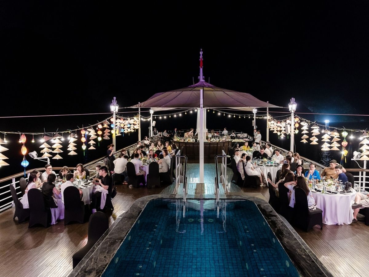 Paradise Elegance belongs to the Paradise Cruises chain with international five-star standard services. Visitors will participate in an itinerary to explore Ha Long Bay, enjoy a seafood buffet for lunch and dinner, especially the moment of watching the sunset from the deck. The Tet tour includes a stop at the mysterious Luon Cave, Titop Island with exciting kayaking activities, and an overnight stay on the ship amidst the poetic bay space. The combo package from BestPrice.vn offers preferential prices, suitable for couples or families who want to preserve memories at the start of the new year.