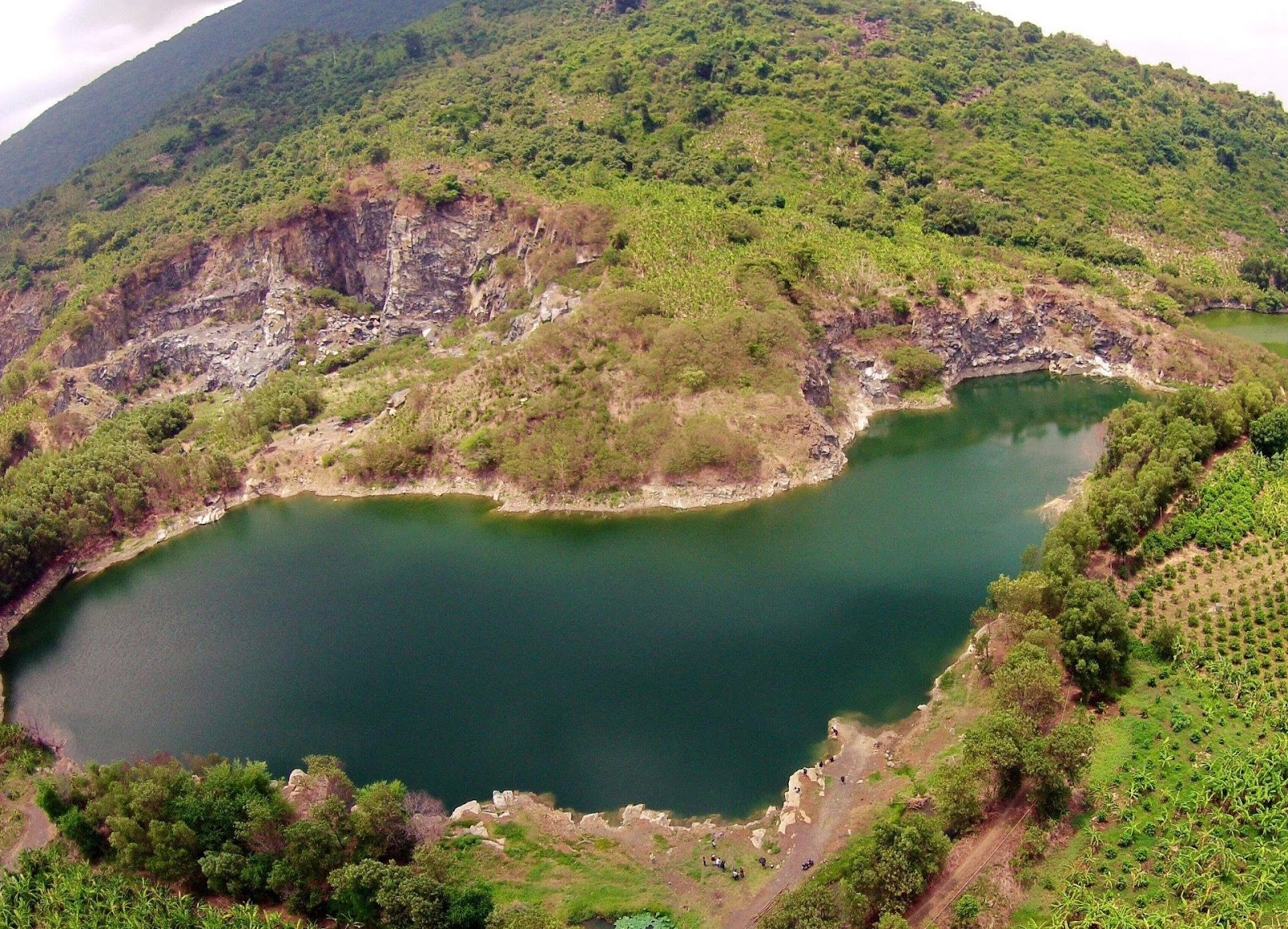 Few people know that Ho Nui Da Lake was once a large-scale quarry. When quarrying activities stopped and this area was abandoned, rainwater gradually accumulated over the years, creating the current deep lake. The steep cliffs surrounding the lake are remnants of the previous quarrying process, while also becoming a highlight that makes the landscape here more majestic.