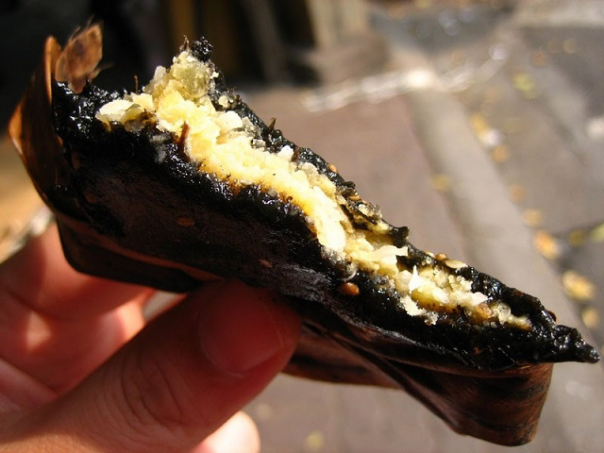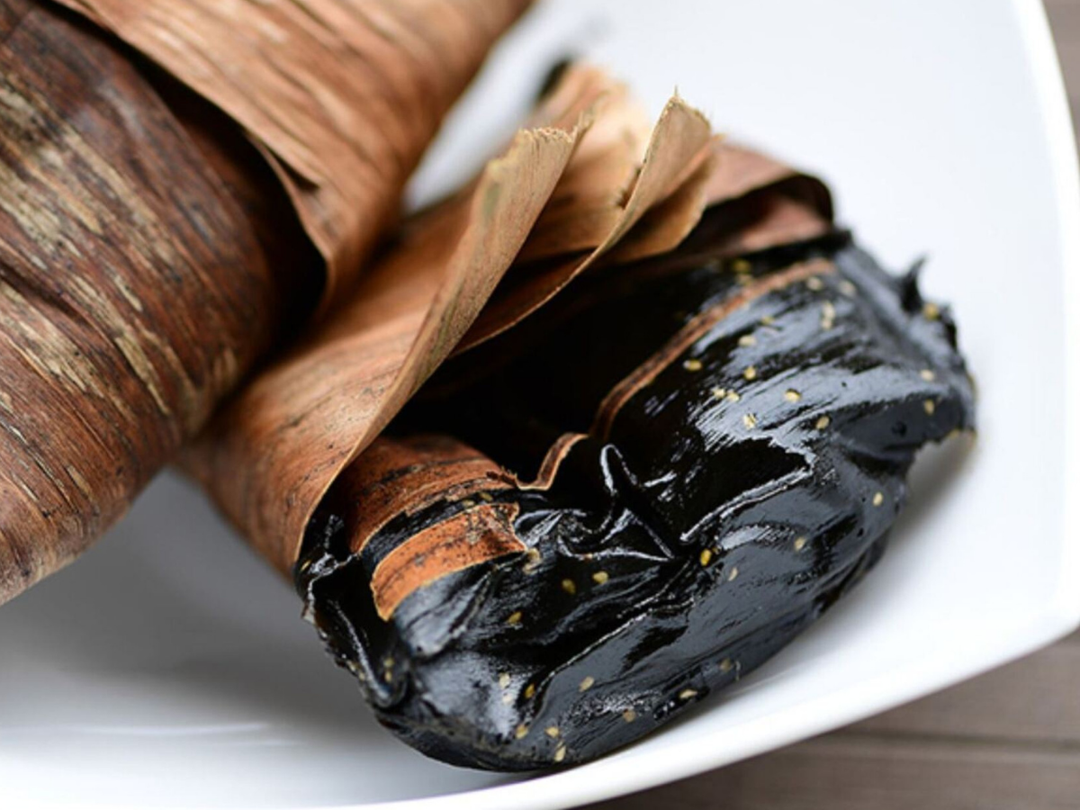 A quality Tu Tru ban gai cake needs a naturally glossy black outer shell, without any white spots or strange signs. It should feel soft and chewy, not dry or too mushy. The cake clearly emits the aroma of gai leaves, combined with the gentle scent of sugarcane honey and banana leaves. The standard filling has an even yellow color, rich with the smell of banana oil, fresh coconut, and absolutely no strange green color, or signs of dryness, staleness, or spoilage.