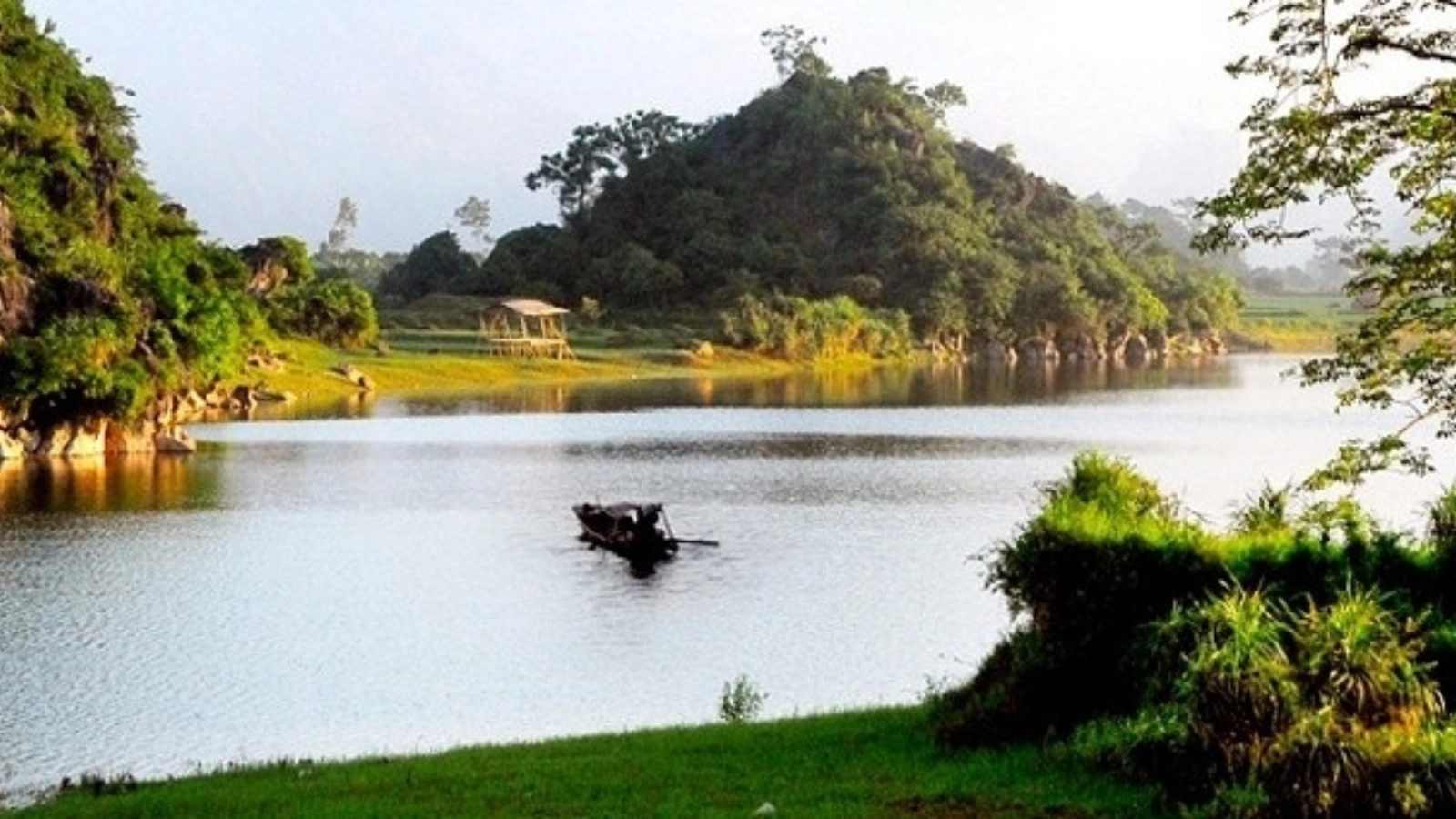 Ban Nguyet Lake – one of the poetic highlights of Bat Canh Son Ha Nam – not only impresses with its natural beauty but also preserves many historical imprints associated with ancient court life. Amidst the majestic mountains, the lake's surface curves softly like a crescent moon, reflecting the clear blue sky and the rustling trees in the wind.