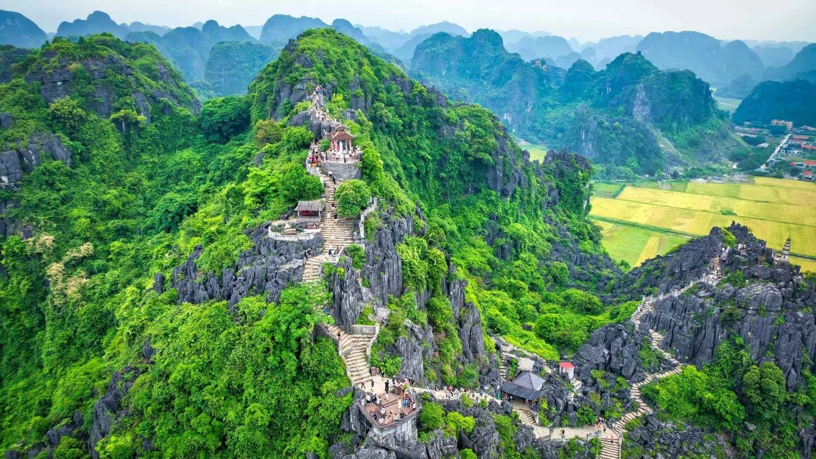 A modern cable car allows visitors to easily access attractions on the mountain, while those seeking a challenge can choose to hike through bamboo forests, stopping at hermitages and pagodas along the way to feel the purity and sacredness.