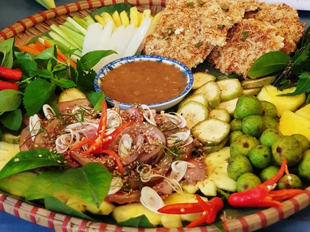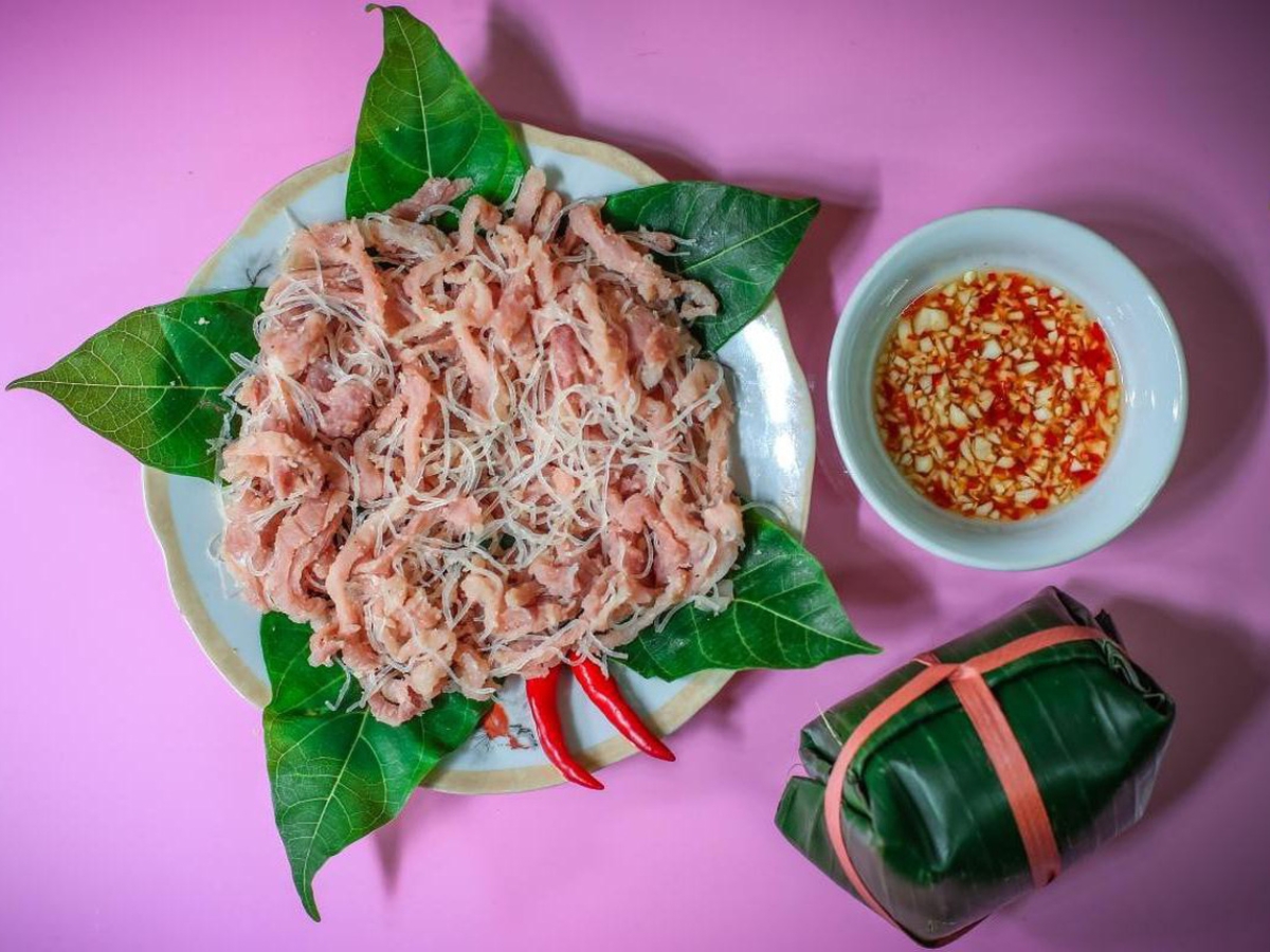 The highlight of this Ninh Binh specialty lies in its mild sourness, rich aroma, and a balanced texture that is tender yet chewy. The traditional way to eat it is with fresh fig leaves, fresh Vietnamese mint leaves, and a flavorful bowl of fish sauce with garlic and chili.