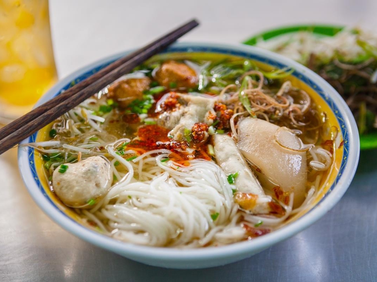 Bun moc Kim Son is a prominent Ninh Binh specialty, featuring a clear broth, sweet from bones, with meatballs made from meat mixed with fragrant shiitake mushrooms. This dish is popular in small eateries in Kim Son market or traditional family restaurants, carrying a characteristic rich flavor.