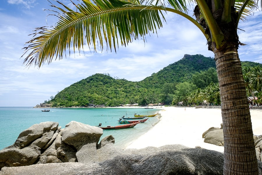 Bottle Beach in Koh Phangan is secluded and cliff-protected, a rare gem among white sand beaches in Southeast Asia