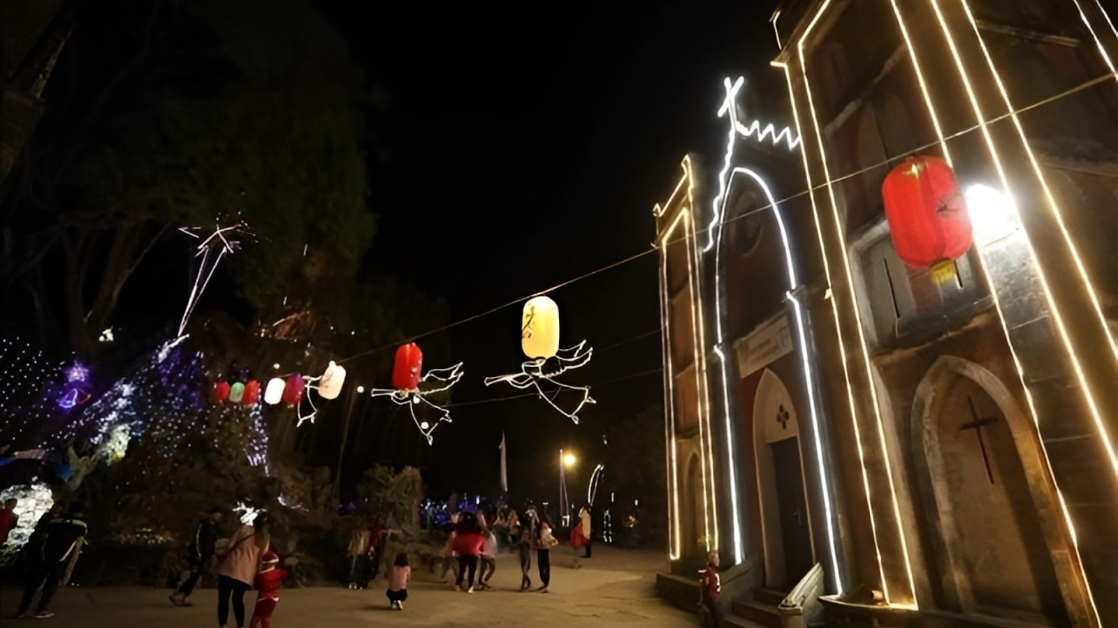 Each year, the church space is decorated with nativity scenes, lanterns, Christmas nativity models, and beautiful lighting systems. The classic background of stone walls combined with yellow lights creates a frame that is both nostalgic and artistic. If you like a truly Catholic Christmas concept, this is definitely a must-visit destination.