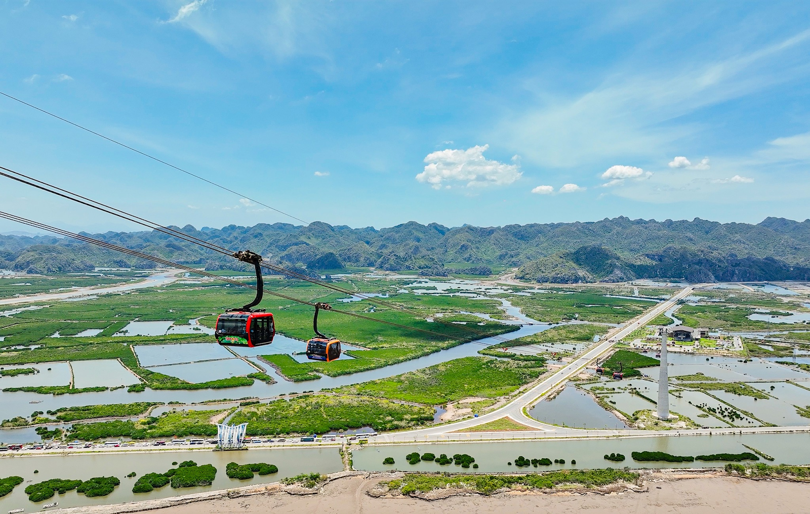 Yatri tezi se, suvidhajanak roop se Cat Ba dweep tak cable car dwara yatra kar sakte hain. (Srot: Sangrahit)