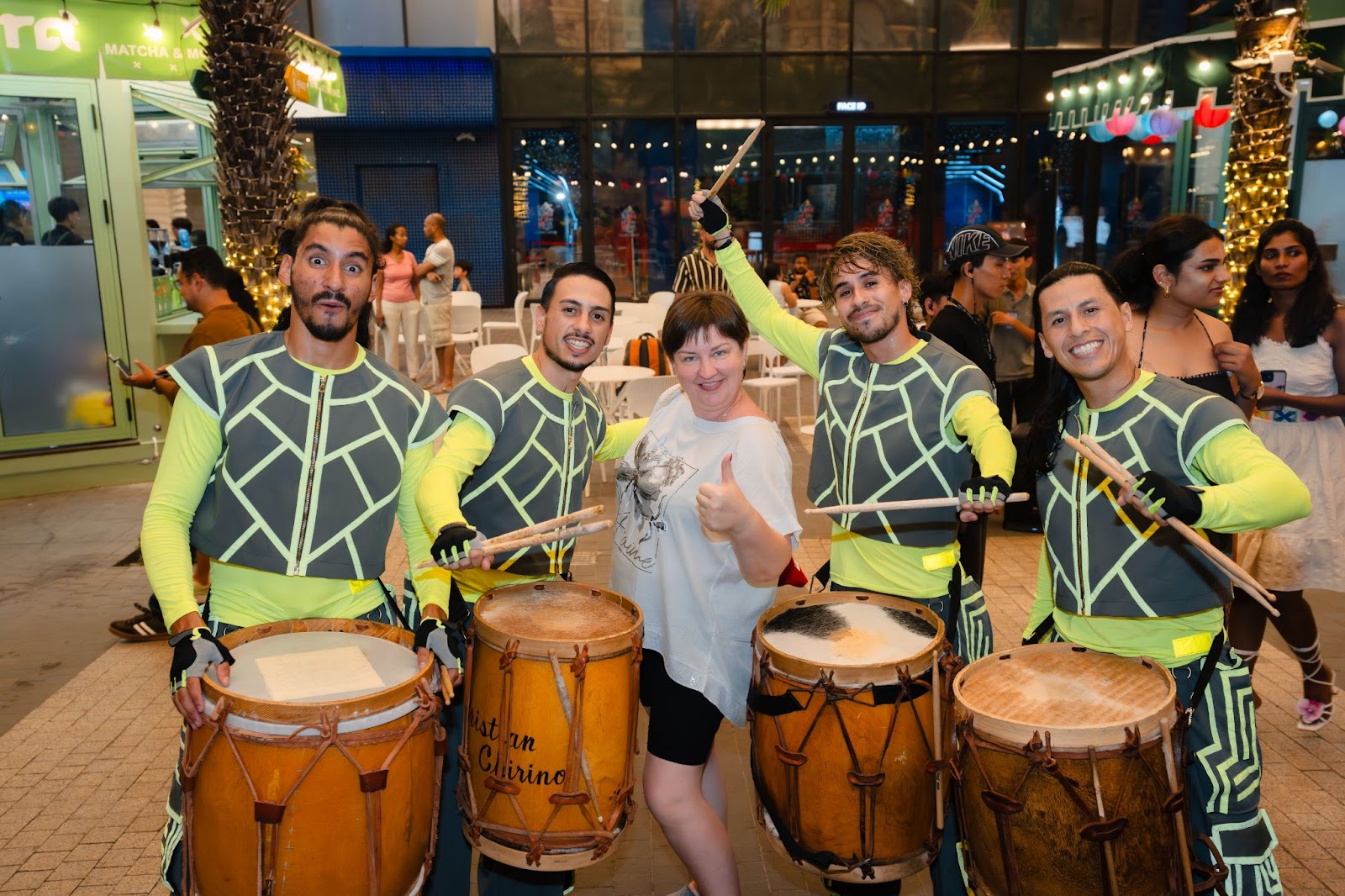 Одно из самых зажигательных шоу на Фукуоке, Malambo Show в ресторане Sun Bavaria GastroPub наполняет вечеринки Сансет-Тауна мощной энергией и ритмом. Вдохновленное огненной танцевальной традицией Аргентины, представление сочетает дробь барабанов, молниеносные шаги и смелую хореографию, создавая атмосферу страсти и притягательного драйва.