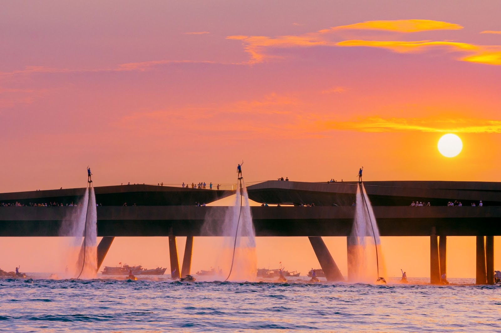 Awaken Sea одно из самых впечатляющих экстремальных спортивных шоу на Фукуоке, объединяющее международных спортсменов с захватывающими выступлениями на джетски и флайбордах на высокой скорости прямо на морской глади. На фоне характерного заката Сансет-Тауна (Sunset Town) шоу создает яркую и динамичную атмосферу развлечений, гармонично сочетая спорт, искусство и красоту островной природы.