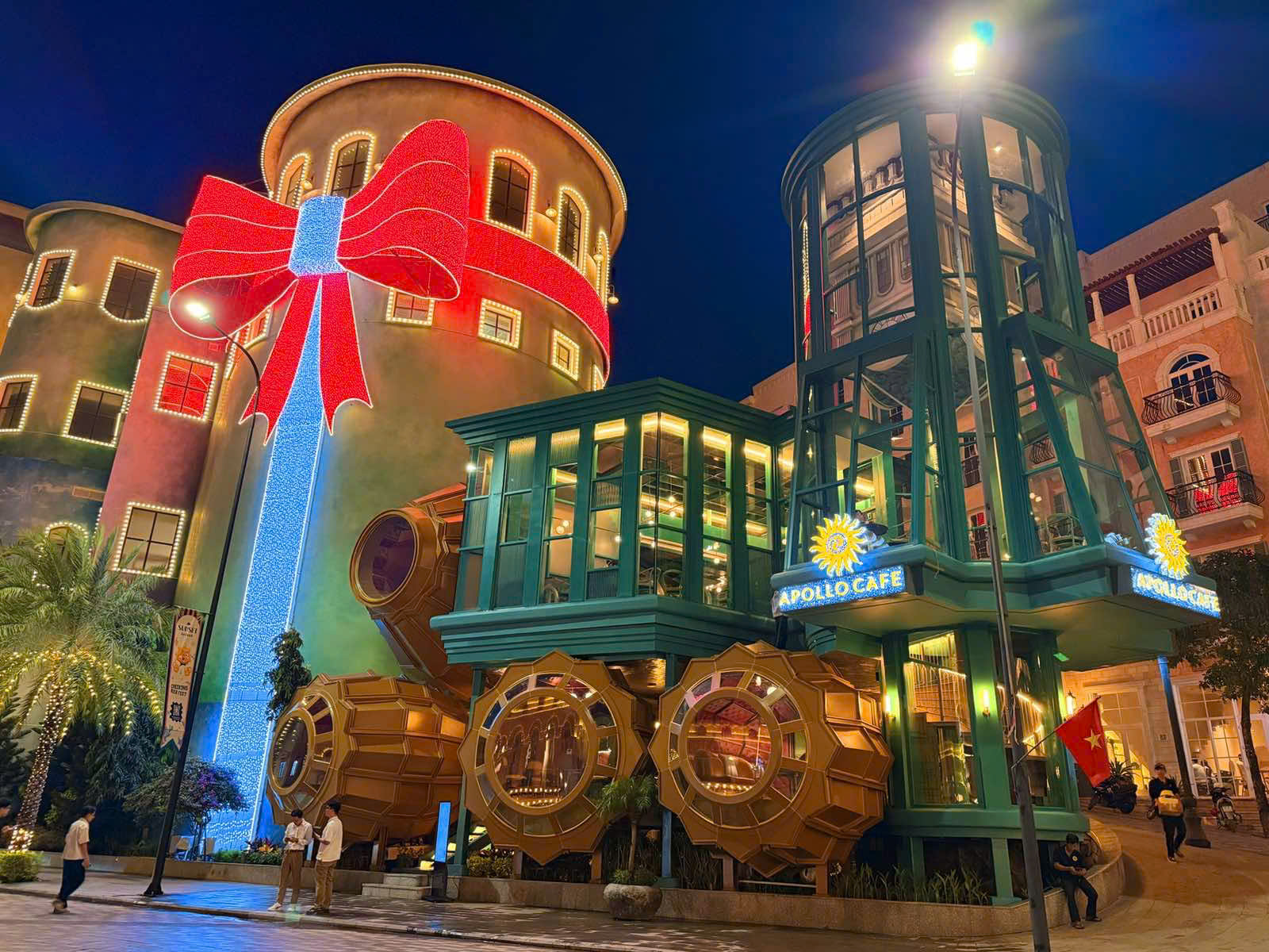 Расположенное на площади Apollo Square — в центральной части Sunset Town — Apollo Cafe стало одной из креативных остановок для путешественников, исследующих южную часть острова. Кафе находится рядом с Sun Signature Gallery, откуда открывается вид на площадь, пешеходную улицу и архитектурные объекты в средиземноморском стиле, такие как фонтан Sun God Waterfall и башня с часами Campanile. Благодаря такому расположению Apollo Cafe стало популярным местом для фотографий среди гостей, которые хотят почувствовать атмосферу фукуок погода и оживлённую жизнь Sunset Town.