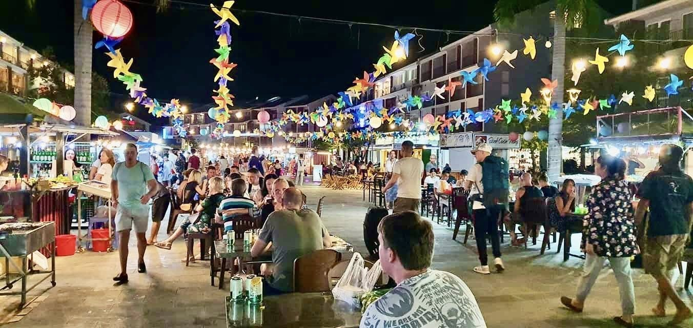 Туристы прогуливаются, наслаждаются едой и впитывают оживленную атмосферу на Sunset Bazaar (Фото: Собрано)