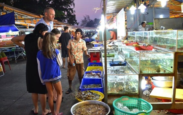 Туристы посещают и выбирают свежие морепродукты на ночном рынке Гань Дау (Фото: Собрано)