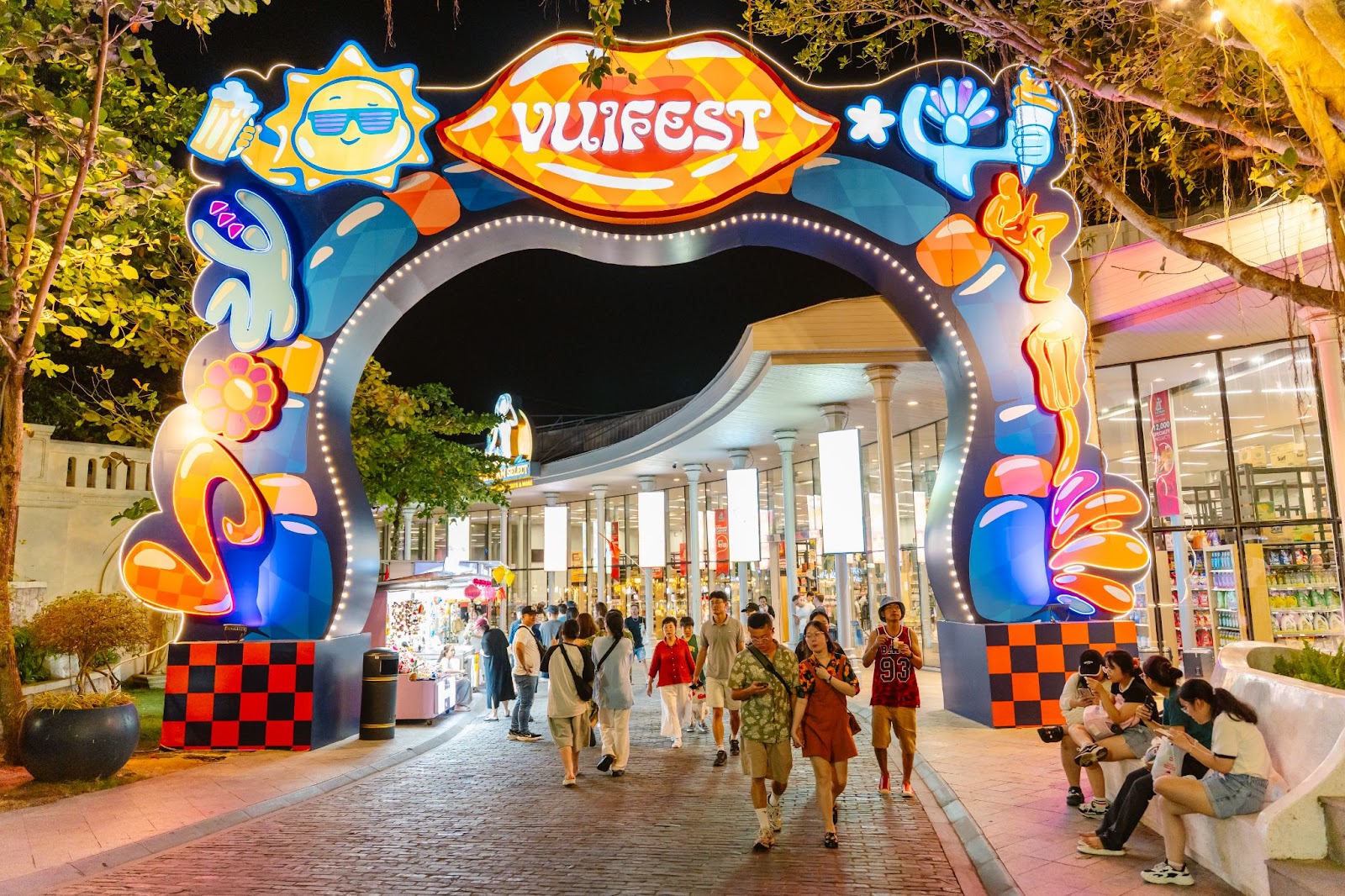 VUI-Fest Bazaar — это первая модель ночного рынка на побережье на Фукуоке, предлагающая оживленное пространство для развлечений, сочетающее покупки и кулинарию. Расположенный недалеко от побережья Южного острова, этот ночной рынок впечатляет более чем 100 ярко освещенными павильонами, художественными зонами для фотографий и сценой для уличных представлений, работающей весь вечер. Посетители могут прогуливаться по прибрежной улице, наслаждаясь крафтовым пивом, коктейлями или уличной едой, наблюдая за живой музыкой, цирковыми представлениями, огненными шоу или диджеями под открытым небом. Благодаря открытому, просторному пространству и праздничной атмосфере, это место стало ночным развлекательным центром, привлекающим множество иностранных туристов во время поездок на Фукуок.