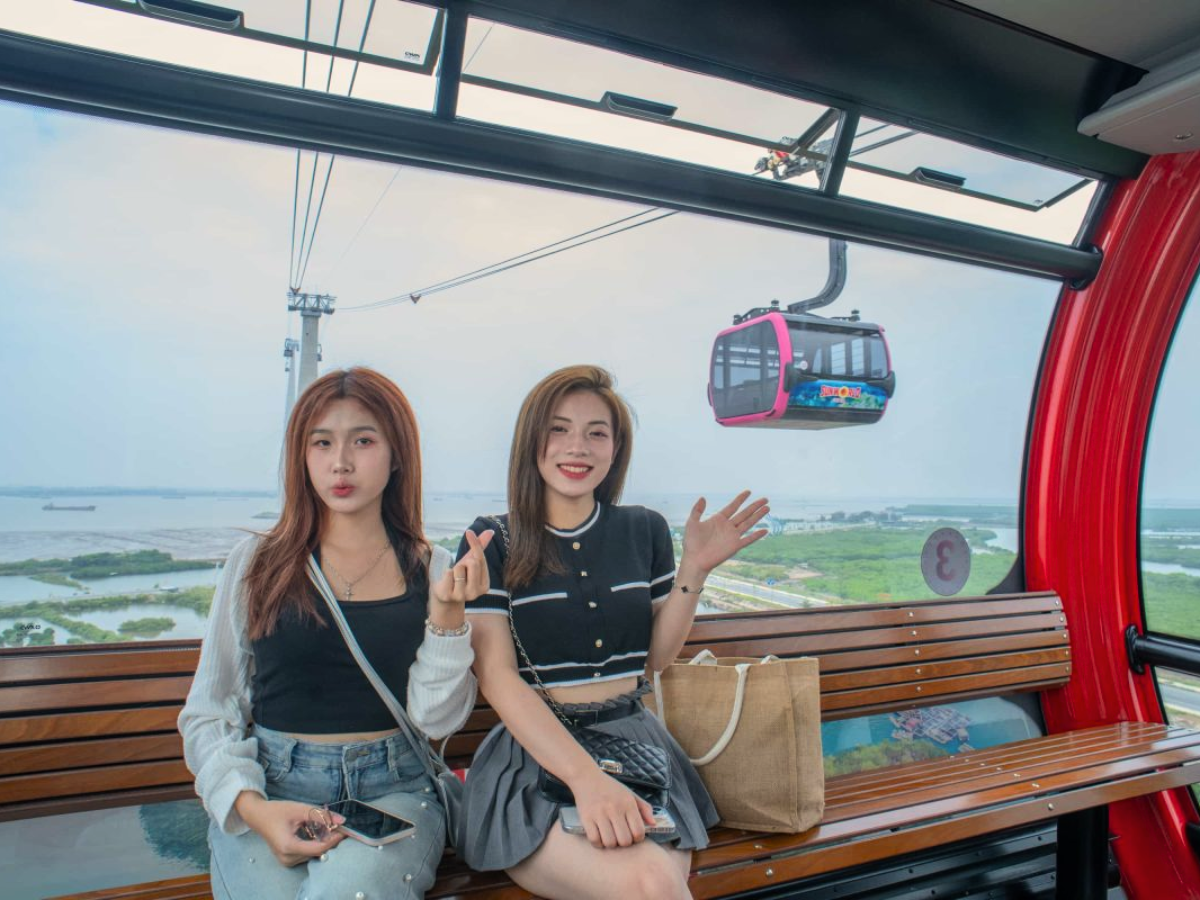 Du khách thích thú trải nghiệm cáp treo Sun World Cat Ba từ trên cao. ( Nguồn: Sưu tầm)