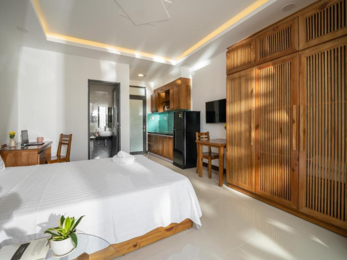 Không chỉ sở hữu thiết kế đẹp mắt, Carol Homestay còn mang đến nhiều tiện ích đáp ứng nhu cầu lưu trú dài ngày. Mỗi căn được trang bị máy giặt riêng, bếp cao cấp, bàn làm việc rộng rãi và wifi tốc độ cao, lý tưởng cho những ai làm việc từ xa. Giá phòng từ 480.000 đồng/đêm cho phòng studio tiêu chuẩn, đặc biệt có ưu đãi cho khách thuê theo tuần hoặc tháng. Du khách từng trải nghiệm đều đánh giá cao sự thân thiện của chủ nhà và cảm giác “như ở nhà”, khiến Carol Homestay trở thành lựa chọn hoàn hảo cho kỳ nghỉ hoặc lưu trú dài hạn tại Đà Nẵng.