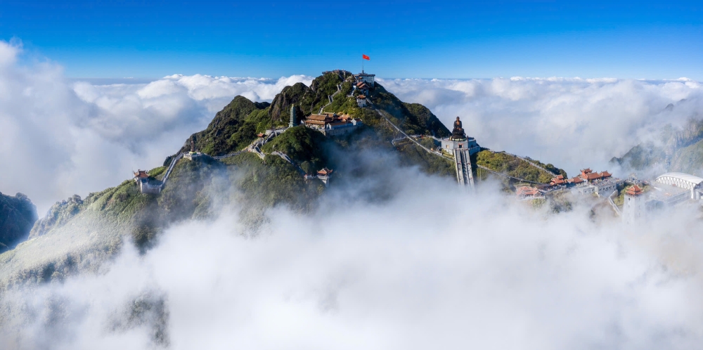Khoảnh khắc trên đỉnh Fansipan vào buổi sáng mang đến cơ hội chiêm ngưỡng biển mây lững lờ bao quanh dãy Hoàng Liên Sơn, ánh nắng ban mai xuyên qua lớp mây, hòa cùng tiếng gió và hương rừng thoang thoảng, mang đến trải nghiệm thư thái và khó quên.