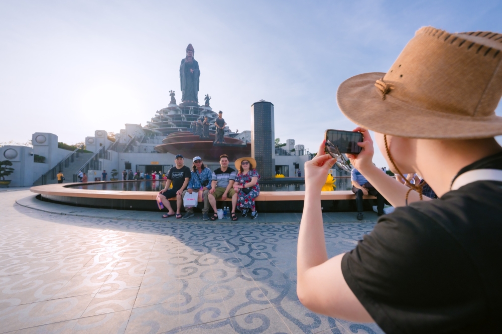 Trên hành trình đi cáp treo, đừng quên dừng lại check-in Tượng Phật Bà Tây Bổ Đà Sơn - tượng Phật Bà bằng đồng cao nhất châu Á tọa lạc trên đỉnh núi, giữa biển mây trắng xóa.