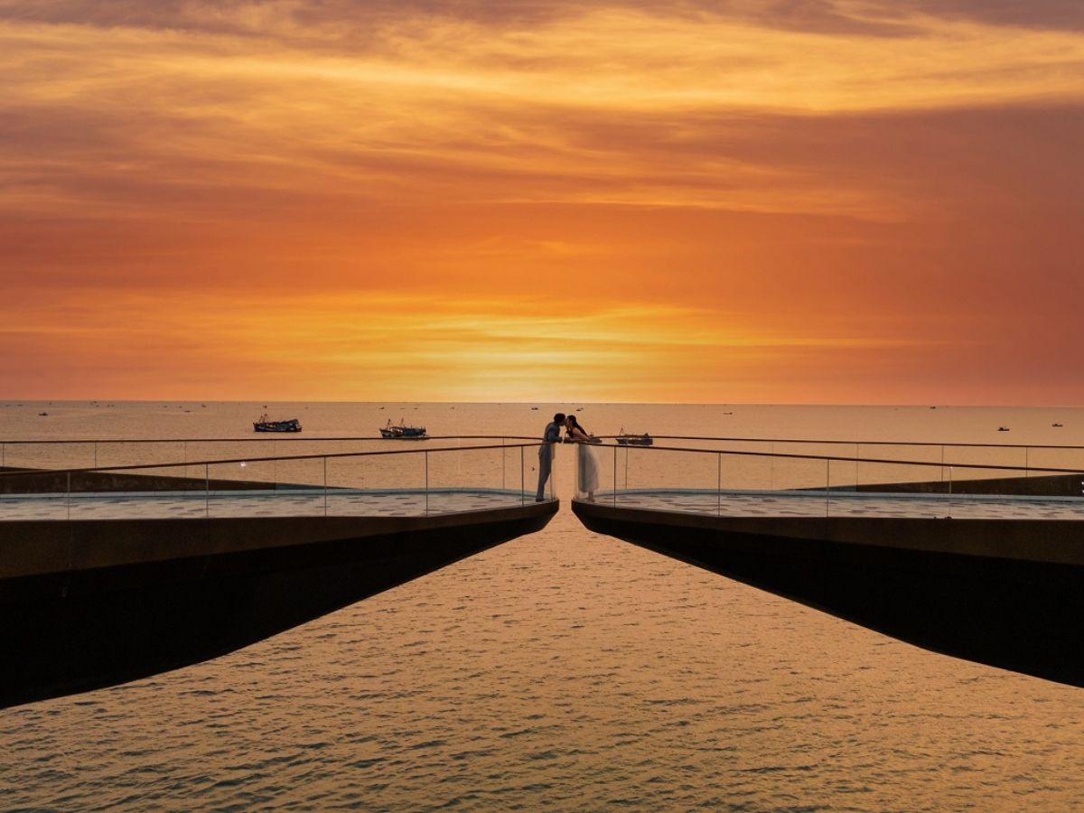 Điểm nhấn nổi bật của thị trấn là Cầu Hôn – công trình kiến trúc biểu tượng tại Phú Quốc. Hai nhánh cầu vươn ra biển, tạo nên hình ảnh giàu tính nghệ thuật và thường được lựa chọn làm điểm check-in vào thời điểm hoàng hôn. Công trình này được lấy cảm hứng từ bức bích họa “The Creation of Adam” của Michelangelo, kết hợp cùng hình ảnh cầu Ô Thước trong chuyện tình Ông Ngâu Bà Ngâu của văn học Việt Nam.