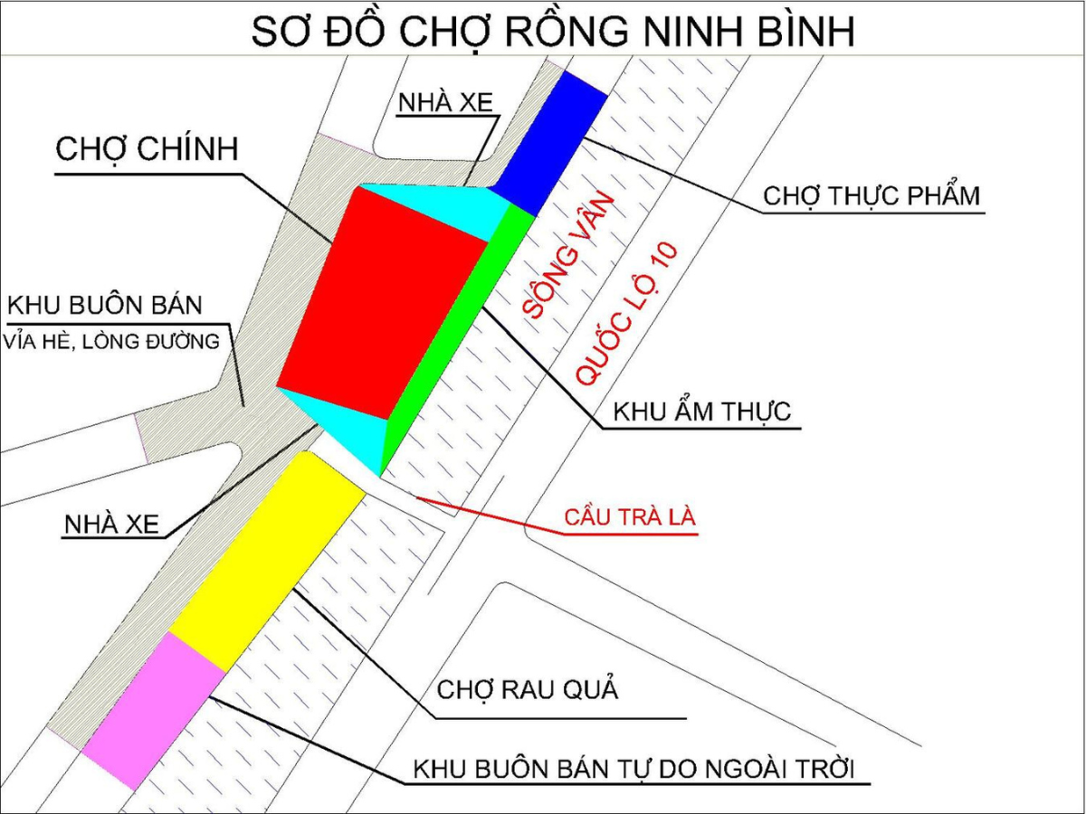 Sơ đồ Chợ Rồng Ninh Bình giúp du khách khám phá từng khu vực. (Nguồn: Sưu tầm)
