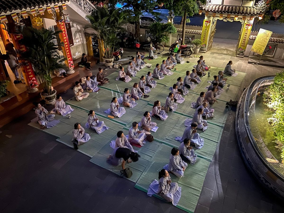 Bên cạnh các lớp định kỳ, chùa còn tổ chức các khóa tu và buổi học đặc biệt vào dịp lễ lớn như Phật Đản hay Tết Nguyên Đán. Các khóa tu này giúp Phật tử thực hành thiền định, học về oai nghi căn bản và các pháp môn tu học sâu hơn. Một trong những hoạt động nổi bật là khóa tu “xuất gia gieo duyên” được tổ chức tại chùa Bát Nhã, thu hút hơn 130 Phật tử tham dự, thể hiện sức lan tỏa mạnh mẽ của hoạt động tu học nơi đây. Môi trường học tập tại chùa luôn được duy trì trong không khí trang nghiêm, yên tĩnh, tạo điều kiện tốt cho việc tập trung và thiền định. Nhờ vậy, những ai tham gia các lớp học Phật giáo tại chùa Bát Nhã không chỉ nâng cao hiểu biết về giáo lý mà còn tìm thấy sự thanh tịnh và hướng thiện trong tâm hồn.