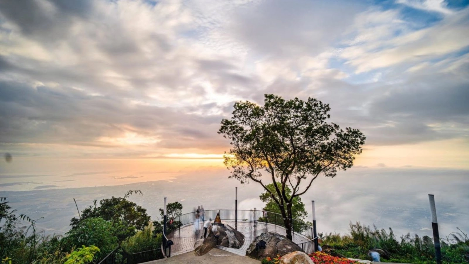 Khi chạm đến đỉnh, du khách sẽ được tận hưởng cảm giác chiến thắng sau hành trình chinh phục “nóc nhà Nam Bộ”. Tại đây, bạn có thể nghỉ ngơi, chụp ảnh, tham quan khu tâm linh với tượng Phật Bà Tây Bổ Đà Sơn và quần thể chùa linh thiêng giữa tầng mây.