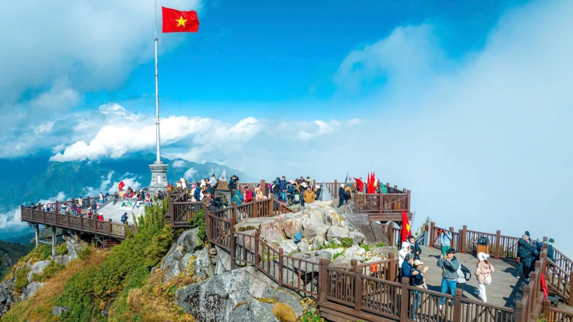 Ngày đầu tiên trong lịch trình du lịch Sa Pa 3 ngày 2 đêm thường bắt đầu tại Sun Plaza với chuyến tàu hỏa leo núi độc đáo. Hành trình tiếp tục bằng cáp treo Fansipan, đưa bạn băng qua những triền núi uốn lượn để chinh phục “nóc nhà Đông Dương”. Tại Sun World Fansipan Legend, du khách không chỉ được tham gia các hoạt động văn hóa của đồng bào dân tộc, thưởng thức lễ hội truyền thống tại Bản Mây mà còn có thể dạo chơi trong khu vườn hoa châu Âu rực rỡ. Khoảnh khắc check-in bên cột mốc 3.143m trên đỉnh Fansipan chắc chắn sẽ là dấu ấn đáng nhớ nhất trong chuyến đi.