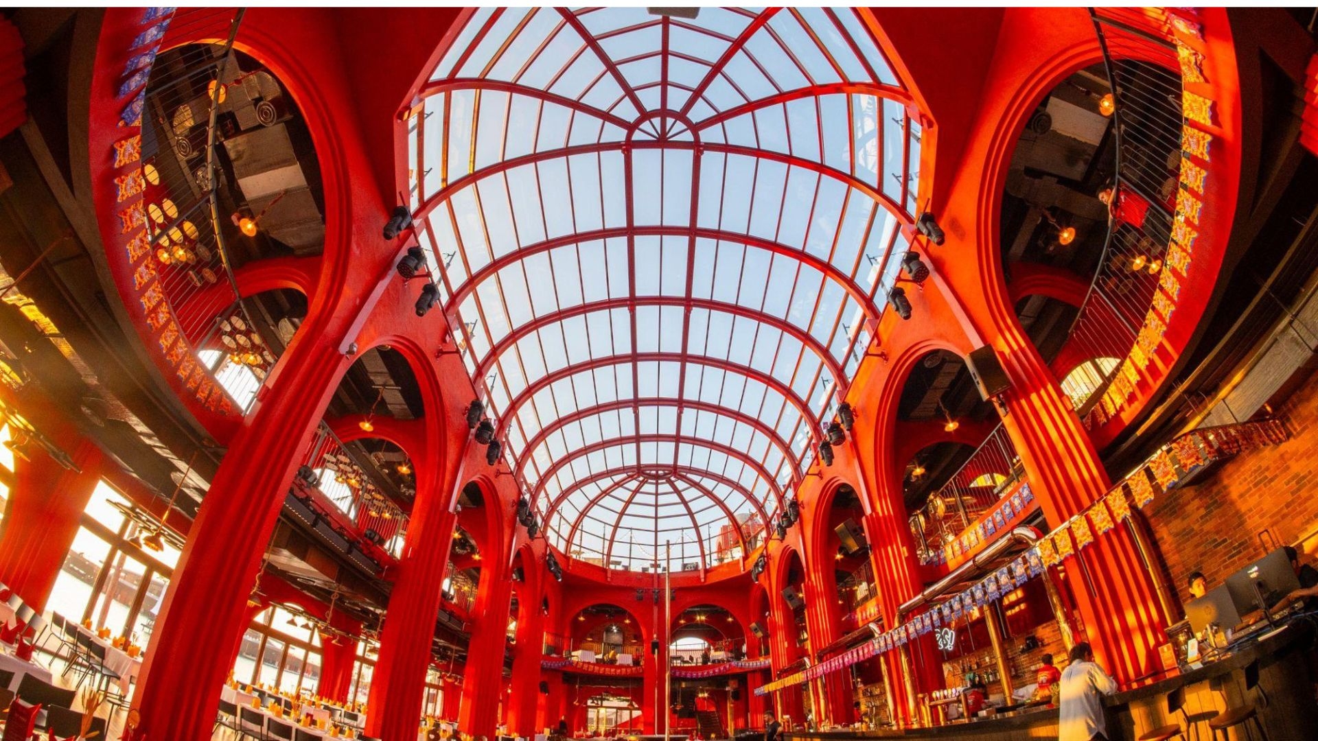 Kiến trúc mái vòm đỏ rực rỡ tại Sun Bavaria GastroPub Phú Quốc. (Nguồn: Sưu tầm)