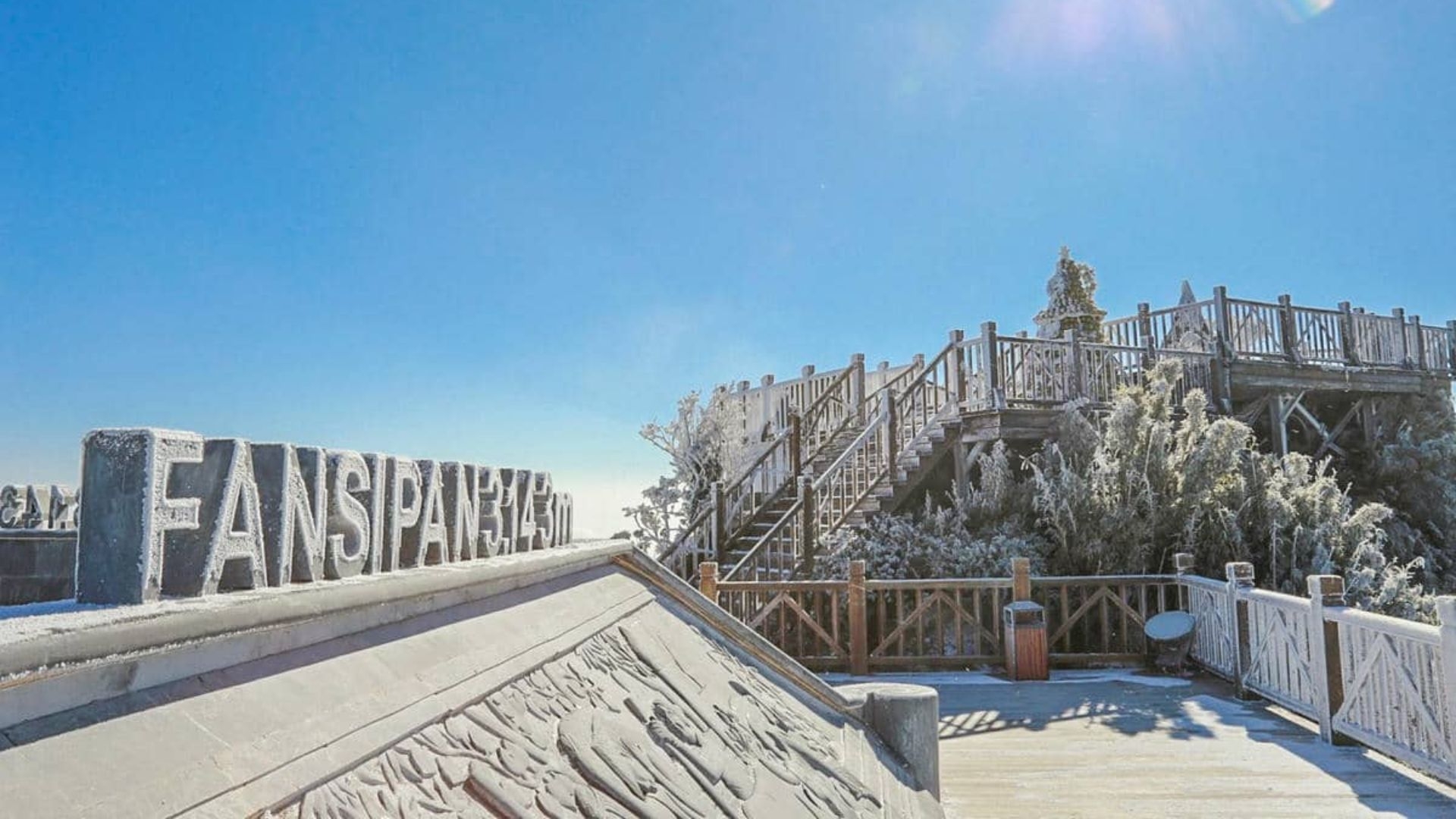 Khi đặt chân lên khu vực đỉnh Fansipan, du khách sẽ được chiêm ngưỡng khung cảnh vừa thiêng liêng vừa hùng vĩ, hiếm nơi nào ở Việt Nam có được. Cả quần thể du lịch văn hóa tâm linh nằm ở độ cao hơn 3.000 m, với những bậc thang đá phủ rêu phong, mái chùa cong vút và tượng Phật A Di Đà khổng lồ, đều được tuyết bao phủ trắng xóa, lấp lánh dưới ánh nắng dịu nhẹ của mùa đông.